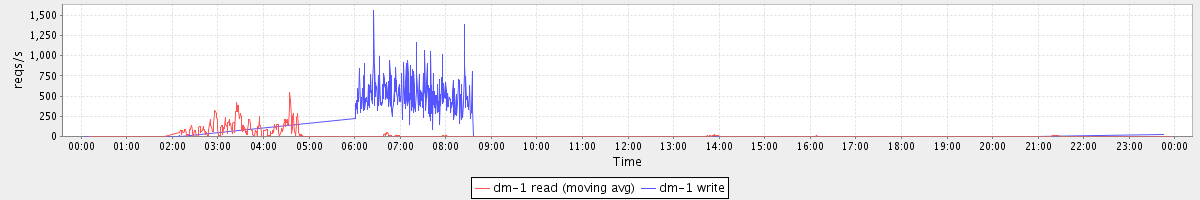 avg(dm-1 read) = 11.95 avg(dm-1 write) = 55.33