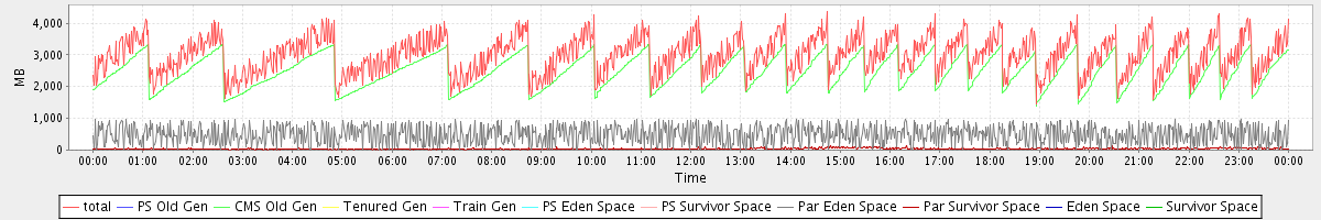 avg(total) = 3002.47 avg(PS Old Gen) = 0.00 avg(CMS Old Gen) = 2477.73 avg(Tenured Gen) = 0.00 avg(Train Gen) = 0.00 avg(PS Eden Space) = 0.00 avg(PS Survivor Space) = 0.00 avg(Par Eden Space) = 485.74 avg(Par Survivor Space) = 39.01 avg(Eden Space) = 0.00 avg(Survivor Space) = 0.00