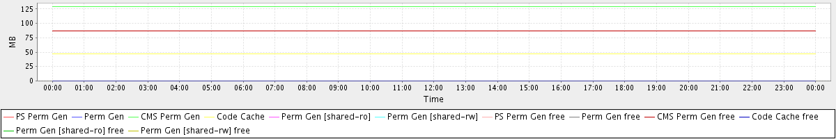 avg(PS Perm Gen) = 0.00 avg(Perm Gen) = 0.00 avg(CMS Perm Gen) = 129.18 avg(Code Cache) = 47.51 avg(Perm Gen [shared-ro]) = 0.00 avg(Perm Gen [shared-rw]) = 0.00 avg(PS Perm Gen free) = 0.00 avg(Perm Gen free) = 0.00 avg(CMS Perm Gen free) = 86.50 avg(Code Cache free) = 0.30 avg(Perm Gen [shared-ro] free) = 0.00 avg(Perm Gen [shared-rw] free) = 0.00
