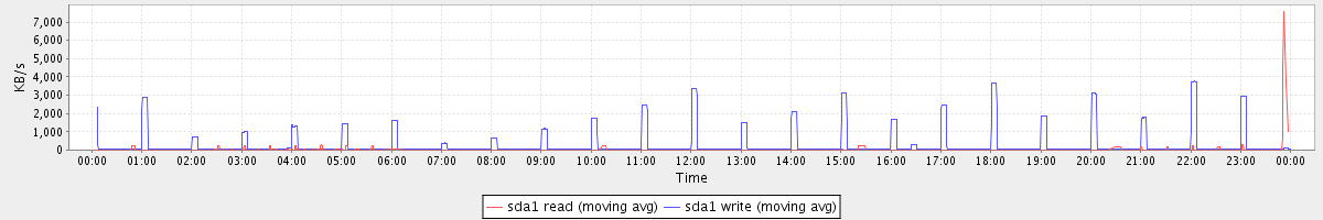 avg(sda1 read) = 19.78 avg(sda1 write) = 278.11