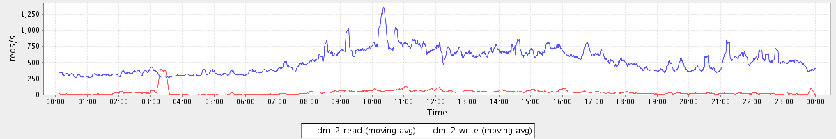 avg(dm-0 read) = 1171.44 avg(dm-0 write) = 431.77