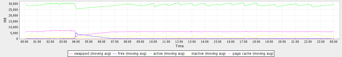 avg(swapped) = 0.25 avg(free) = 438.45 avg(active) = 28958.99 avg(inactive) = 2041.87 avg(page cache) = 6071.70