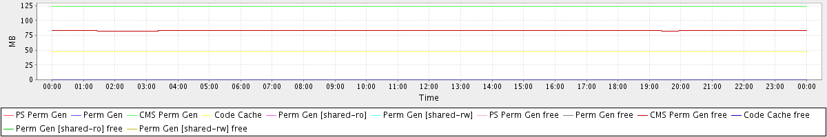 avg(PS Perm Gen) = 0.00 avg(Perm Gen) = 0.00 avg(CMS Perm Gen) = 123.62 avg(Code Cache) = 47.56 avg(Perm Gen [shared-ro]) = 0.00 avg(Perm Gen [shared-rw]) = 0.00 avg(PS Perm Gen free) = 0.00 avg(Perm Gen free) = 0.00 avg(CMS Perm Gen free) = 82.77 avg(Code Cache free) = 0.32 avg(Perm Gen [shared-ro] free) = 0.00 avg(Perm Gen [shared-rw] free) = 0.00