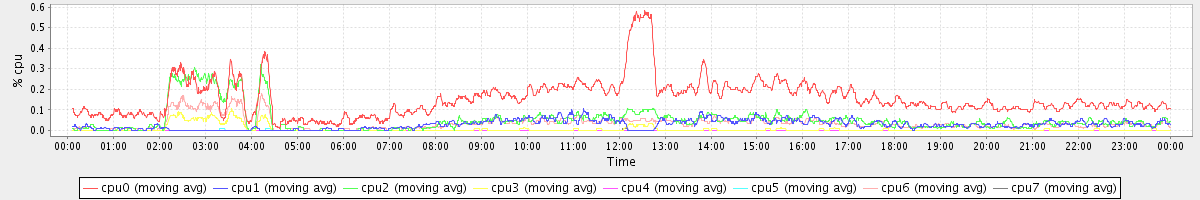 avg(cpu0) = 0.16 avg(cpu1) = 0.03 avg(cpu2) = 0.05 avg(cpu3) = 0.01 avg(cpu4) = 0.00 avg(cpu5) = 0.00 avg(cpu6) = 0.03 avg(cpu7) = 0.00