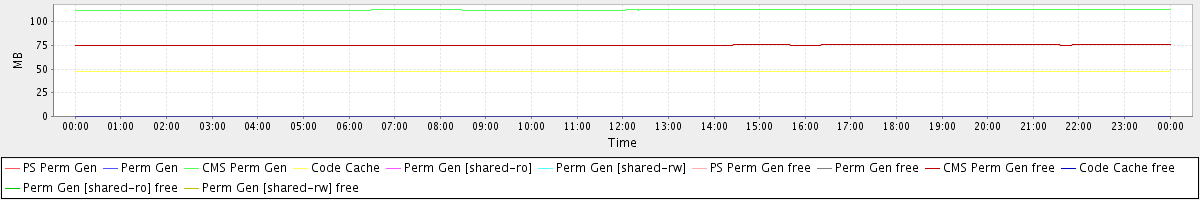 avg(PS Perm Gen) = 0.00 avg(Perm Gen) = 0.00 avg(CMS Perm Gen) = 112.49 avg(Code Cache) = 47.54 avg(Perm Gen [shared-ro]) = 0.00 avg(Perm Gen [shared-rw]) = 0.00 avg(PS Perm Gen free) = 0.00 avg(Perm Gen free) = 0.00 avg(CMS Perm Gen free) = 75.19 avg(Code Cache free) = 0.33 avg(Perm Gen [shared-ro] free) = 0.00 avg(Perm Gen [shared-rw] free) = 0.00
