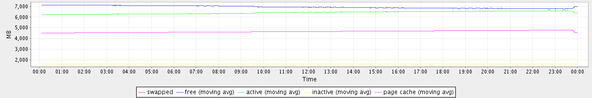 avg(swapped) = 0.00 avg(free) = 6952.26 avg(active) = 6422.24 avg(inactive) = 1615.74 avg(page cache) = 4644.89