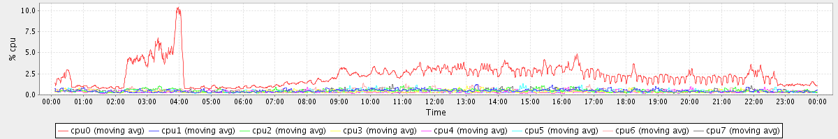 avg(cpu0) = 2.28 avg(cpu1) = 0.48 avg(cpu2) = 0.49 avg(cpu3) = 0.38 avg(cpu4) = 0.32 avg(cpu5) = 0.39 avg(cpu6) = 0.46 avg(cpu7) = 0.39