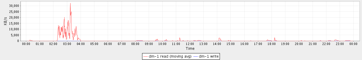 avg(dm-1 read) = 9.05 avg(dm-1 write) = 0.03