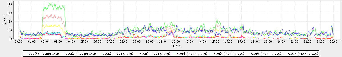 avg(cpu0) = 2.53 avg(cpu1) = 0.52 avg(cpu2) = 0.56 avg(cpu3) = 0.50 avg(cpu4) = 0.42 avg(cpu5) = 0.51 avg(cpu6) = 0.52 avg(cpu7) = 0.49