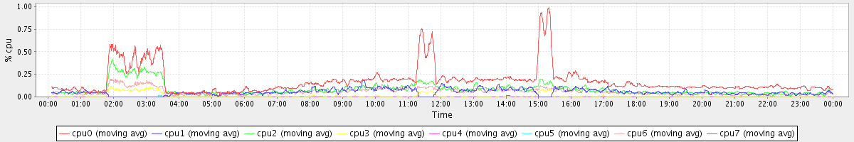 avg(cpu0) = 0.17 avg(cpu1) = 0.05 avg(cpu2) = 0.08 avg(cpu3) = 0.01 avg(cpu4) = 0.00 avg(cpu5) = 0.00 avg(cpu6) = 0.06 avg(cpu7) = 0.00