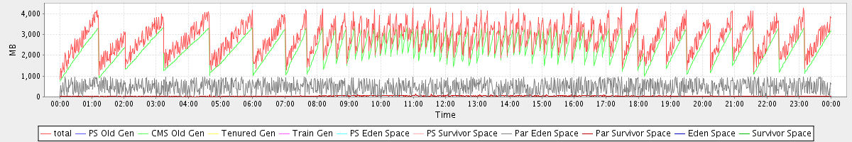avg(total) = 2827.22 avg(PS Old Gen) = 0.00 avg(CMS Old Gen) = 2307.80 avg(Tenured Gen) = 0.00 avg(Train Gen) = 0.00 avg(PS Eden Space) = 0.00 avg(PS Survivor Space) = 0.00 avg(Par Eden Space) = 483.21 avg(Par Survivor Space) = 36.21 avg(Eden Space) = 0.00 avg(Survivor Space) = 0.00
