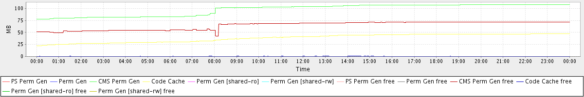 avg(PS Perm Gen) = 0.00 avg(Perm Gen) = 0.00 avg(CMS Perm Gen) = 97.70 avg(Code Cache) = 38.56 avg(Perm Gen [shared-ro]) = 0.00 avg(Perm Gen [shared-rw]) = 0.00 avg(PS Perm Gen free) = 0.00 avg(Perm Gen free) = 0.00 avg(CMS Perm Gen free) = 64.56 avg(Code Cache free) = 0.35 avg(Perm Gen [shared-ro] free) = 0.00 avg(Perm Gen [shared-rw] free) = 0.00