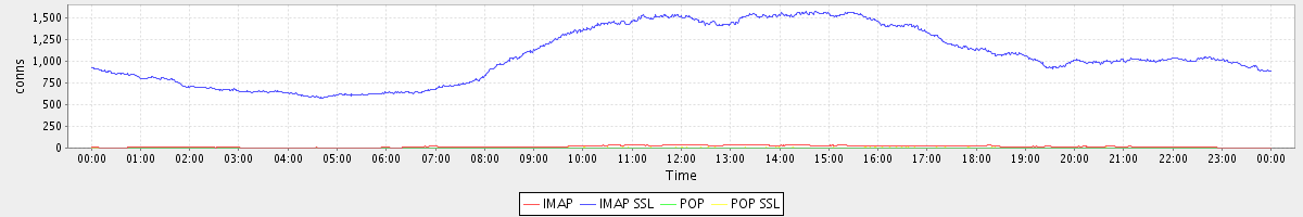 avg(IMAP) = 16.62 avg(IMAP SSL) = 1059.60 avg(POP) = 0.04 avg(POP SSL) = 2.14