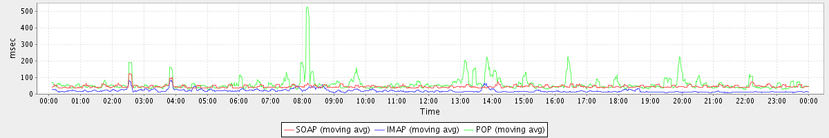 Host zm04.stanford.edu: Mailboxd: Response Time by Client Protocol