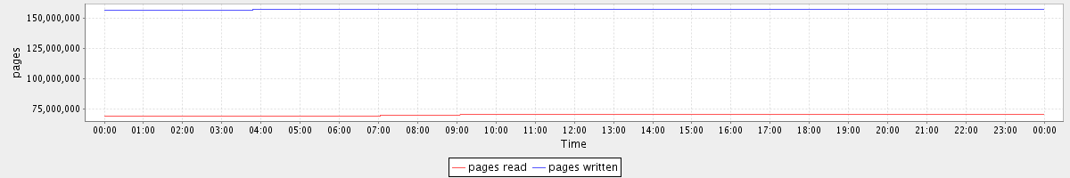 avg(pages read) = 70229394.29 avg(pages written) = 157420462.79