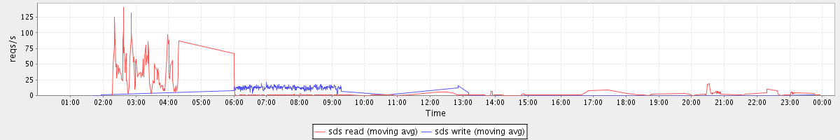 avg(sda read) = 1.21 avg(sda write) = 4.31