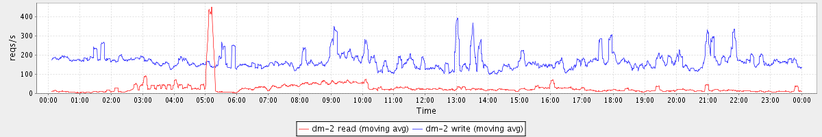 avg(dm-0 read) = 1358.26 avg(dm-0 write) = 205.92