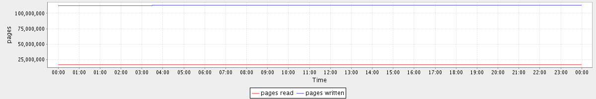 avg(pages read) = 17240028.88 avg(pages written) = 113084560.70