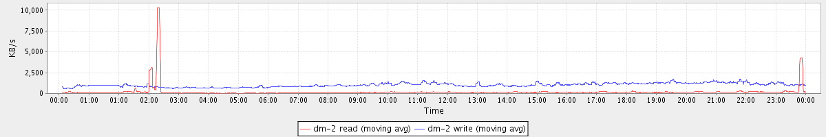 avg(dm-2 read) = 15.35 avg(dm-2 write) = 181.64