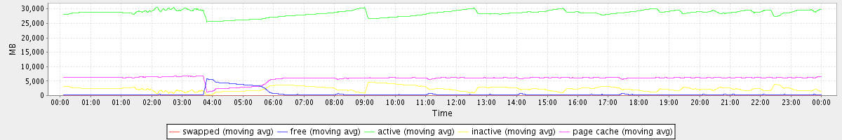 avg(swapped) = 0.25 avg(free) = 558.86 avg(active) = 28571.41 avg(inactive) = 2307.12 avg(page cache) = 5882.15