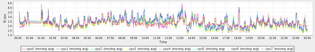 avg(cpu0) = 2.34 avg(cpu1) = 2.46 avg(cpu2) = 2.42 avg(cpu3) = 2.21 avg(cpu4) = 2.29 avg(cpu5) = 2.33 avg(cpu6) = 2.43 avg(cpu7) = 2.27