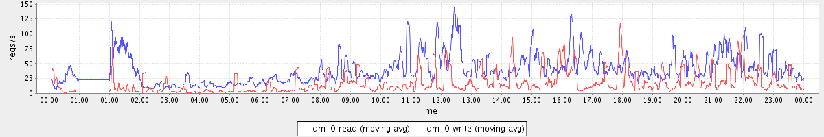 avg(dm-0 read) = 17.71 avg(dm-0 write) = 41.50