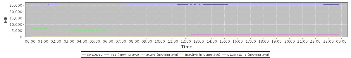 avg(swapped) = 0.00 avg(free) = 25939.55 avg(active) = 5679.94 avg(inactive) = 198.26 avg(page cache) = 1782.25
