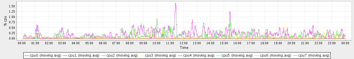 avg(cpu0) = 0.01 avg(cpu1) = 0.00 avg(cpu2) = 0.10 avg(cpu3) = 0.05 avg(cpu4) = 0.21 avg(cpu5) = 0.01 avg(cpu6) = 0.01 avg(cpu7) = 0.00