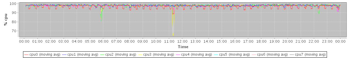 avg(cpu0) = 96.94 avg(cpu1) = 97.92 avg(cpu2) = 97.97 avg(cpu3) = 97.87 avg(cpu4) = 97.90 avg(cpu5) = 98.33 avg(cpu6) = 98.29 avg(cpu7) = 98.51