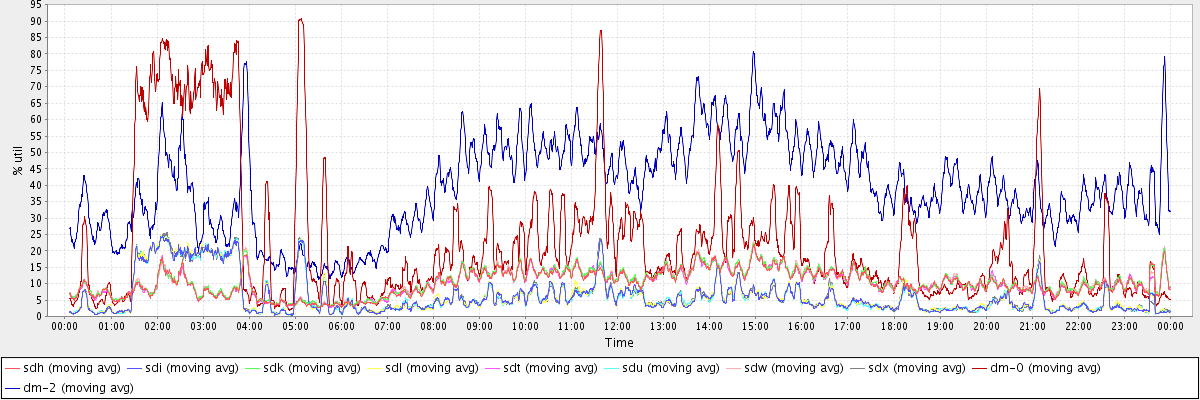 avg(dm-2 read) = 39.61 avg(dm-2 write) = 441.78