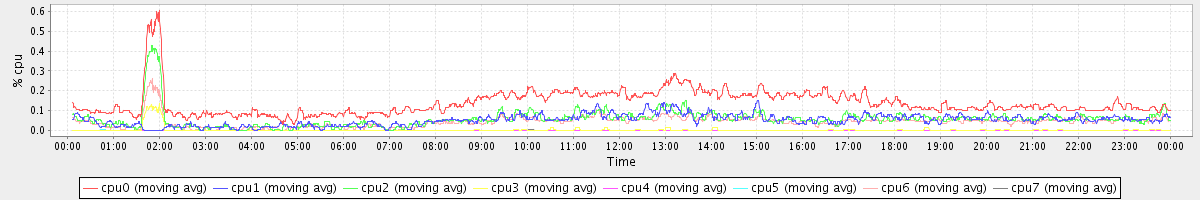 avg(cpu0) = 0.14 avg(cpu1) = 0.05 avg(cpu2) = 0.06 avg(cpu3) = 0.00 avg(cpu4) = 0.00 avg(cpu5) = 0.00 avg(cpu6) = 0.04 avg(cpu7) = 0.00