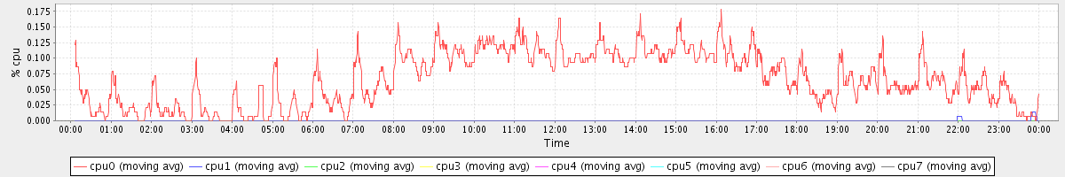avg(cpu0) = 0.07 avg(cpu1) = 0.00 avg(cpu2) = 0.00 avg(cpu3) = 0.00 avg(cpu4) = 0.00 avg(cpu5) = 0.00 avg(cpu6) = 0.00 avg(cpu7) = 0.00