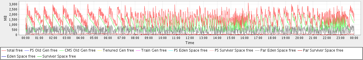 avg(total free) = 1668.35 avg(PS Old Gen free) = 0.00 avg(CMS Old Gen free) = 1115.62 avg(Tenured Gen free) = 0.00 avg(Train Gen free) = 0.00 avg(PS Eden Space free) = 0.00 avg(PS Survivor Space free) = 0.00 avg(Par Eden Space free) = 481.28 avg(Par Survivor Space free) = 71.44 avg(Eden Space free) = 0.00 avg(Survivor Space free) = 0.00