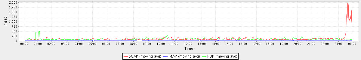 avg(IMAP) = 17.54 avg(IMAP SSL) = 1183.73 avg(POP) = 0.10 avg(POP SSL) = 4.23