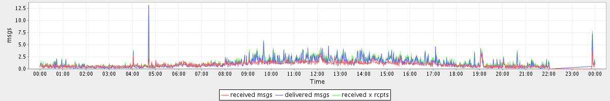 avg(received msgs) = 0.94 avg(delivered msgs) = 1.08 avg(received x rcpts) = 1.35