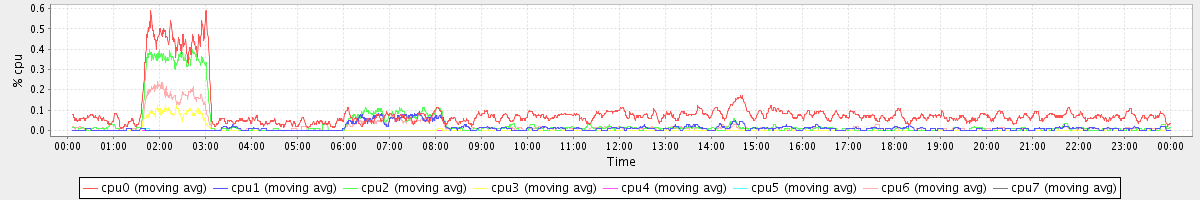 avg(cpu0) = 0.09 avg(cpu1) = 0.01 avg(cpu2) = 0.03 avg(cpu3) = 0.01 avg(cpu4) = 0.00 avg(cpu5) = 0.00 avg(cpu6) = 0.02 avg(cpu7) = 0.00