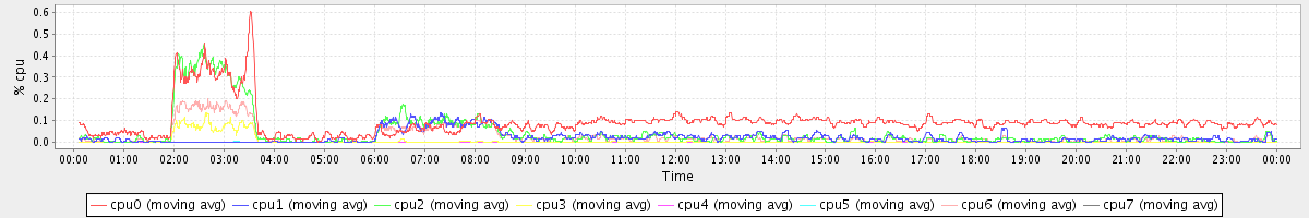 avg(cpu0) = 0.09 avg(cpu1) = 0.02 avg(cpu2) = 0.04 avg(cpu3) = 0.01 avg(cpu4) = 0.00 avg(cpu5) = 0.00 avg(cpu6) = 0.03 avg(cpu7) = 0.00