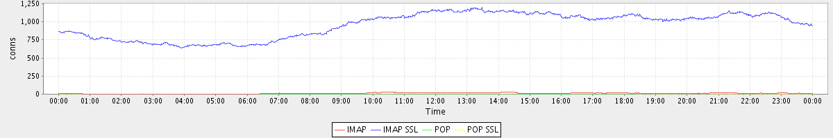avg(IMAP) = 11.31 avg(IMAP SSL) = 954.99 avg(POP) = 0.01 avg(POP SSL) = 3.31