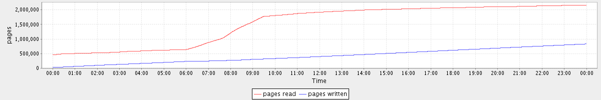 avg(pages read) = 1532786.99 avg(pages written) = 416333.08