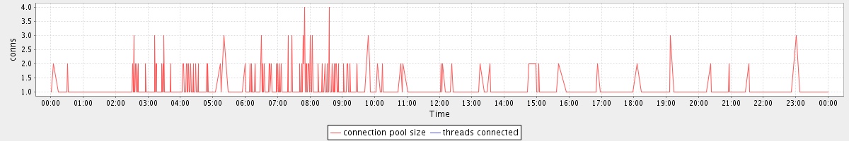 avg(connection pool size) = 0.48 avg(threads connected) = 0.00