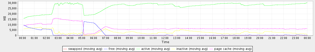 avg(swapped) = 0.22 avg(free) = 1573.09 avg(active) = 26867.74 avg(inactive) = 3031.05 avg(page cache) = 7282.52