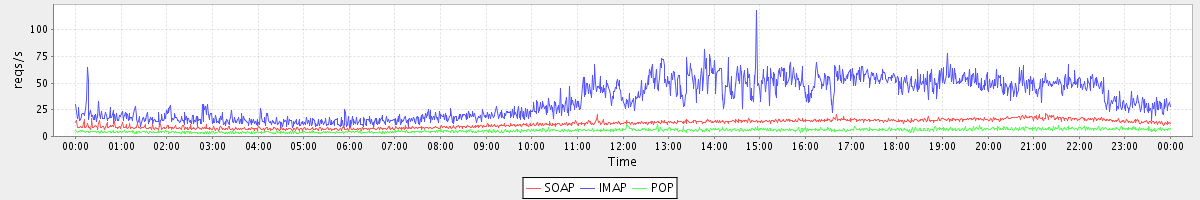 Host zm06.stanford.edu: Mailboxd: Request Rate by Client Protocol