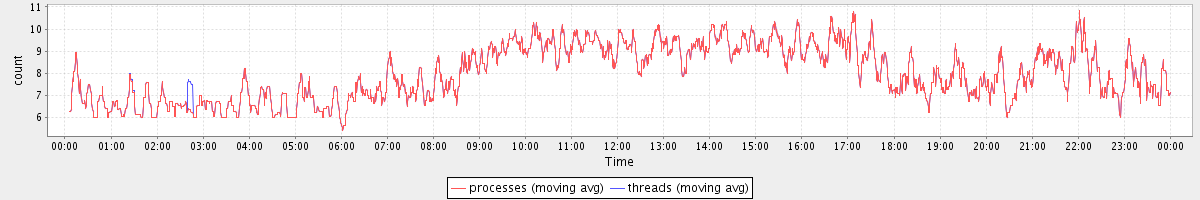 avg(processes waiting for run time) = 3.11 avg(processes waiting for io time) = 0.41 avg(load average (1 min)) = 3.62