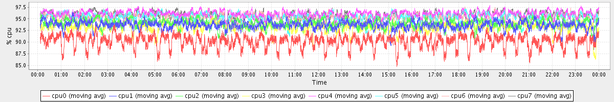 avg(cpu0) = 90.13 avg(cpu1) = 93.64 avg(cpu2) = 94.01 avg(cpu3) = 93.22 avg(cpu4) = 96.01 avg(cpu5) = 95.40 avg(cpu6) = 95.24 avg(cpu7) = 95.68