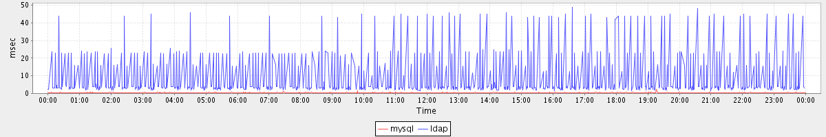 avg(mysql) = 0.21 avg(ldap) = 5.82