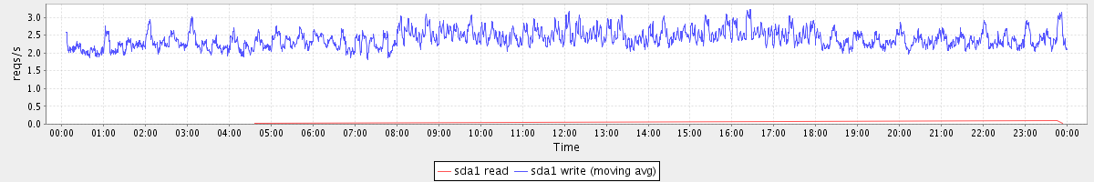 avg(sda1 read) = 0.00 avg(sda1 write) = 2.40