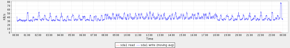 avg(sda1 read) = 0.00 avg(sda1 write) = 38.83