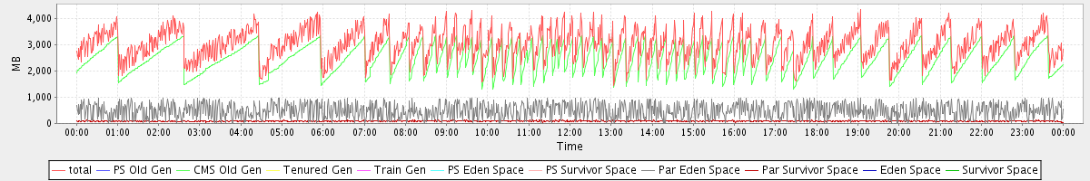 avg(total) = 3013.19 avg(PS Old Gen) = 0.00 avg(CMS Old Gen) = 2433.09 avg(Tenured Gen) = 0.00 avg(Train Gen) = 0.00 avg(PS Eden Space) = 0.00 avg(PS Survivor Space) = 0.00 avg(Par Eden Space) = 489.88 avg(Par Survivor Space) = 90.23 avg(Eden Space) = 0.00 avg(Survivor Space) = 0.00
