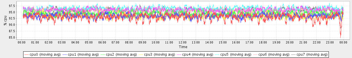 avg(cpu0) = 93.07 avg(cpu1) = 93.49 avg(cpu2) = 94.36 avg(cpu3) = 93.62 avg(cpu4) = 95.77 avg(cpu5) = 96.45 avg(cpu6) = 95.62 avg(cpu7) = 95.70