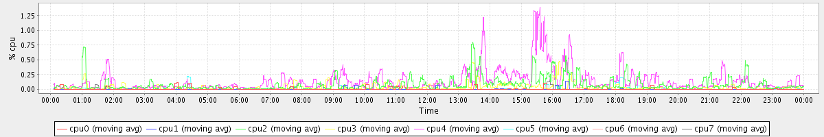 avg(cpu0) = 0.69 avg(cpu1) = 0.60 avg(cpu2) = 0.54 avg(cpu3) = 0.60 avg(cpu4) = 0.35 avg(cpu5) = 0.24 avg(cpu6) = 0.27 avg(cpu7) = 0.26